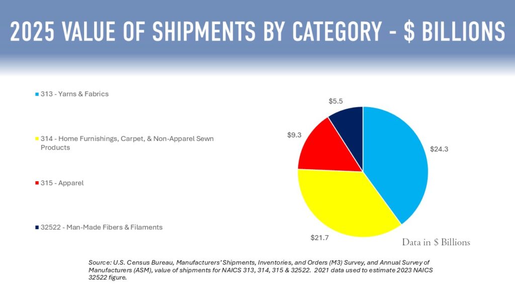 - $24.3 billion for NAICS 313 – Textile Mills (Yarns & Fabrics)